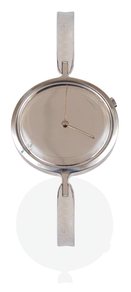 Designed by Vivianna Torun Bülow-Hübe, manual wind movement, circular silvered dial, signed case and movement, sterling silver case and band, reference 227, 34mm diameter.
