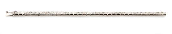 Comprising thirty six round brilliant cut diamonds totalling 1.80cts, grain set in articulated box links, in 18ct rhodium plated gold, total length 180mm.
