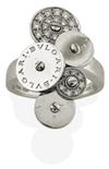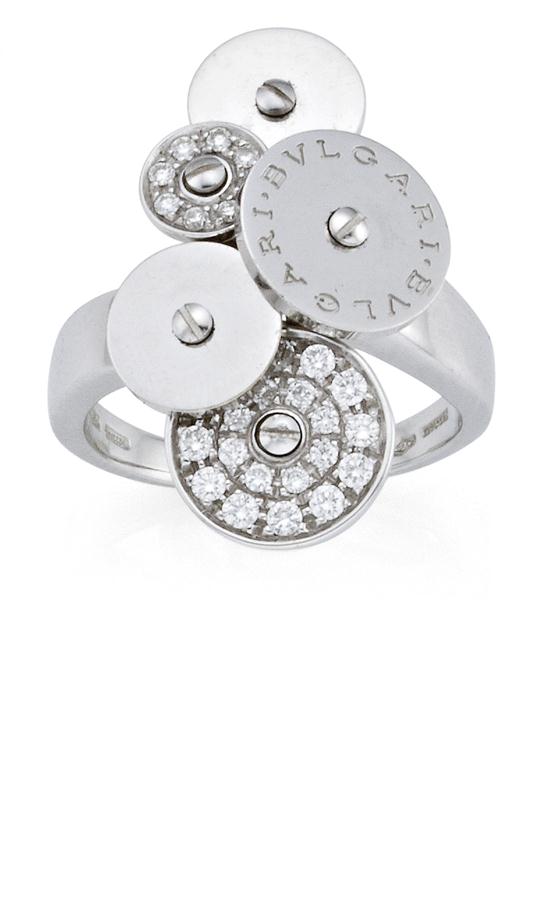 From the 'Ciccaldi' range comprising rotating discs, two set with diamonds, in 18ct white gold, boxed, ring size K-L.