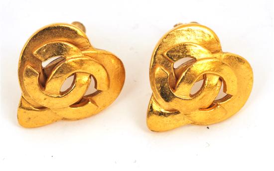 Styled as a heart shaped monogram, in gilt metal to clip fittings.