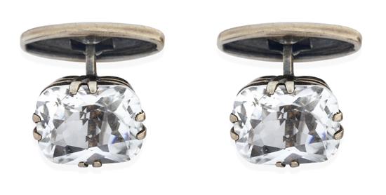A PAIR OF ROCK CRYSTAL CUFFLINKS