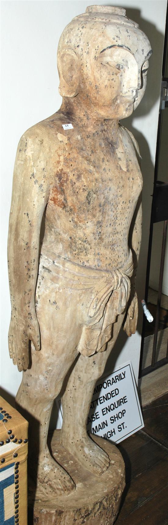 A CHINESE TIMBER AND PAPIER MACHE ACUPUNCTURE MODEL