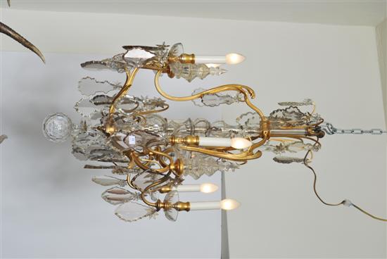 A FRENCH GILT BRASS AND CRYSTAL CHANDELIER