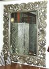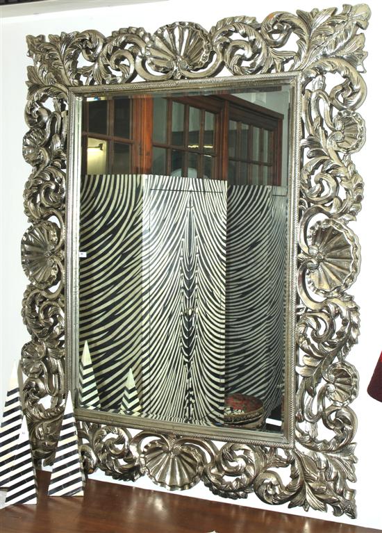 The bevelled rectangular plate within an ornate foliate carved surround overlaid in silver, 148 x 117cm