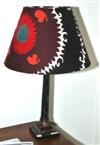 A COLUMNAR LAMP BASE AND SUZANI COVERED SHADE 75cm total height.