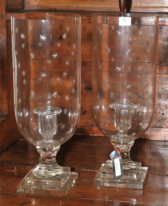 Each engraved with a repeating star design, 38cm high.