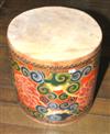 The cylindrical body with foliate painted decoration, 37cm diameter x 40cm high.