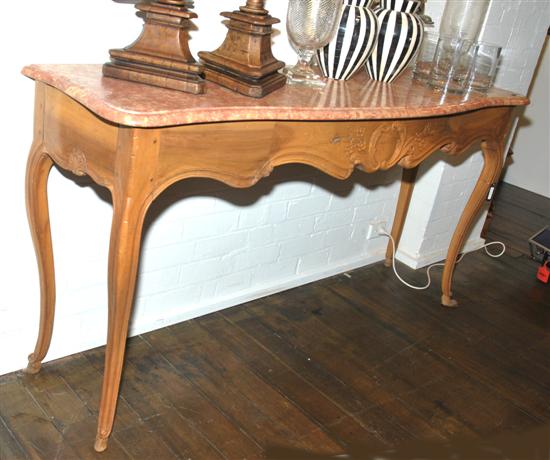 A LOUIS XV STYLE FRUITWOOD AND MARBLE CONSOLE