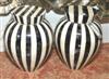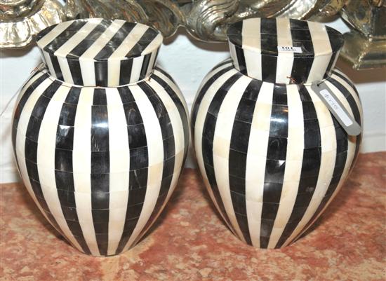 A PAIR OF FAUX TORTOISESHELL STRIPE URNS