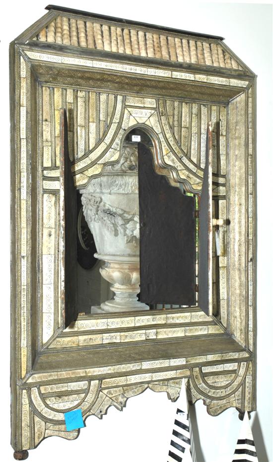A MOROCCAN BONE AND SILVER MOUNTED MIRROR*