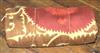 A LARGE SUZANI CLOTH Embroidered in red and brown tones on a saffron ground, 360 x 230cm.