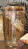 A CYLINDRICAL GLAZED EARTHENWARE JAR