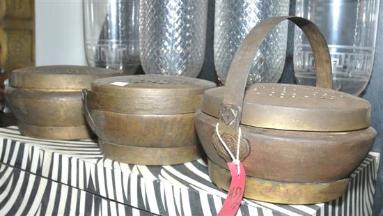 THREE CIRCULAR METAL WARMING PANS