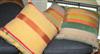 A GROUP OF THREE MULTICOLOURED AND STRIPED SCATTER CUSHIONS
