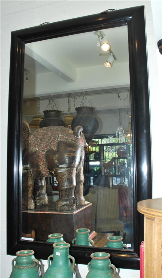 AN EBONISED FRAMED WALL MIRROR The rectangular plate within a bevelled black surround, 173 x 108cm.