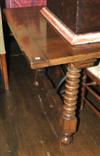 A FINE QUALITY ITALIANATE OAK REFECTORY TABLE The rectangular planked top raised on splayed bobbin turned and wrought iron stretcher, 310 x 100 x 77cm.