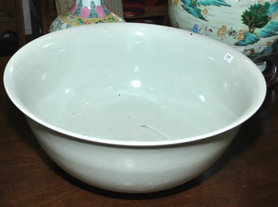 AN IMPRESSIVE CHINESE CELADON GLAZED BOWL 51cm diameter x 30.5cm high.