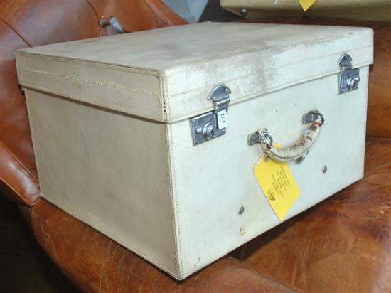 A LARGE SQUARE BLACK VELLUM TRAVELLING CASE