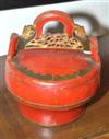 A GROUP OF THREE CHINESE RED LACQUERED WOODEN FOOD CONTAINERS
