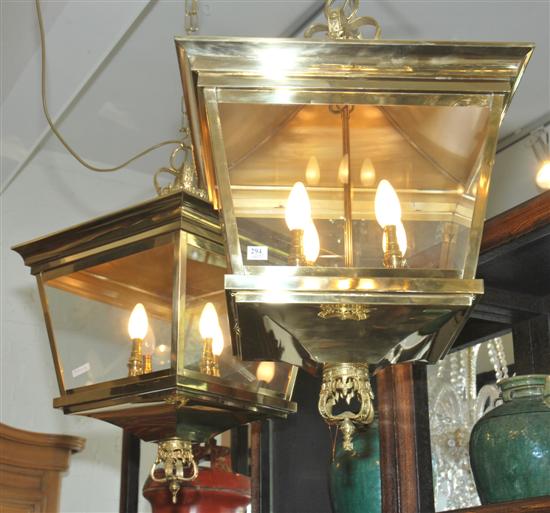A PAIR OF BRASS FRAMED LANTERNS