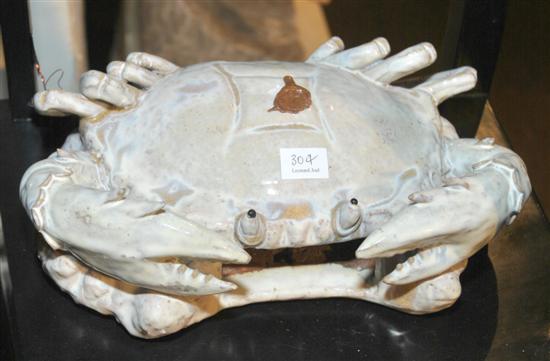TWO WHITE GLAZED EARTHENWARE CRABS