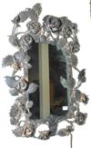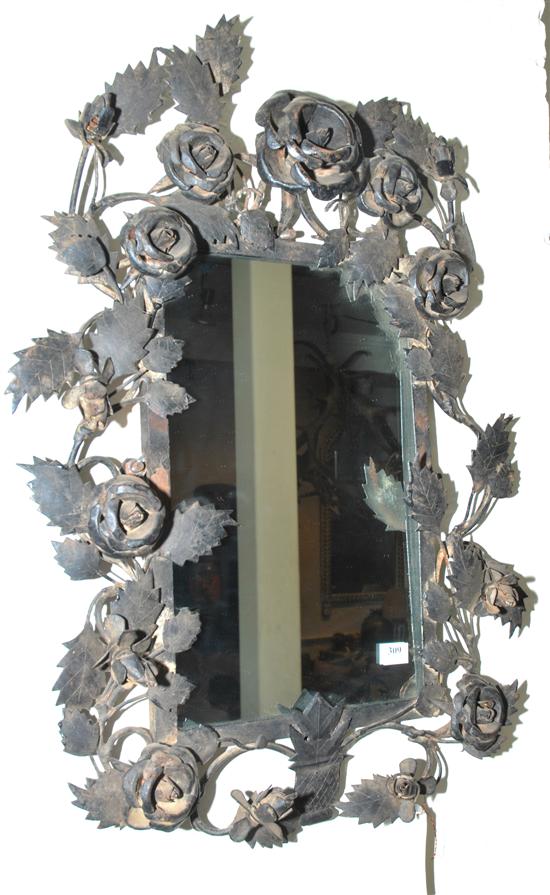 A FOLIATE CAST WROUGHT IRON WALL MIRROR The rectangular plate, within a surround modelled with rose petals and leaves, 62 x 44 cm.