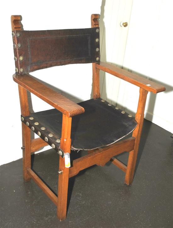 A RUSTIC OAK FRAMED CARVER CHAIR
