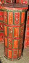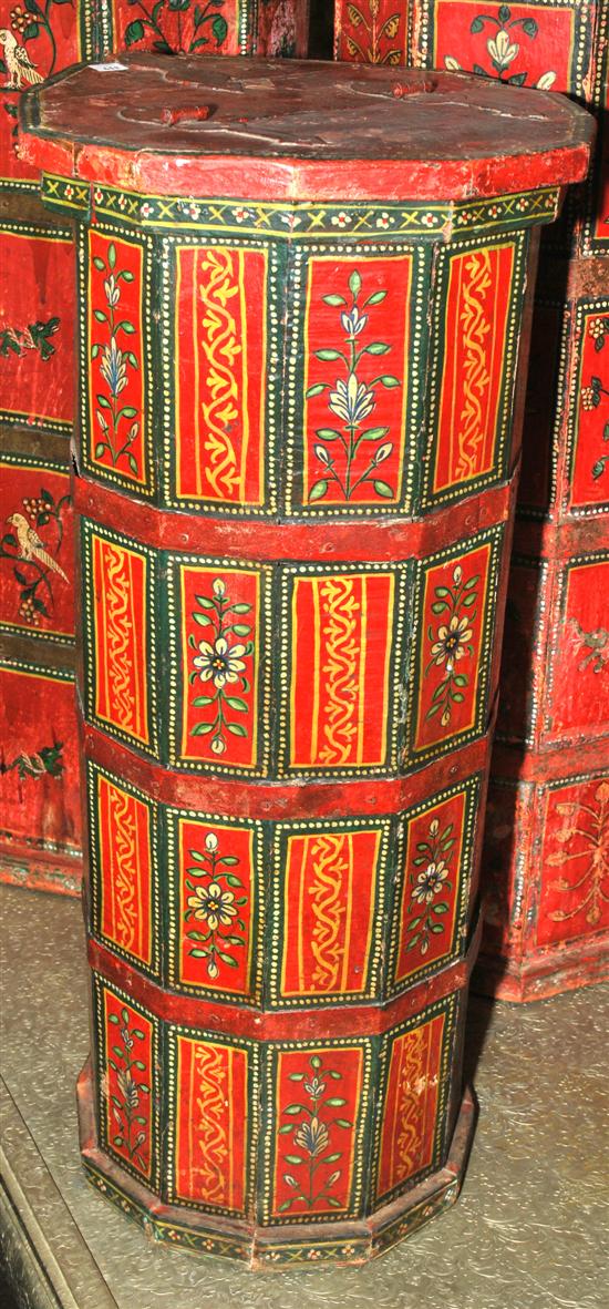 A MOROCCAN PAINTED WOODEN CONTAINER The facetted rectangular body painted in vibrant colours with repeating foliate panels, 39.5 x 89 x 39.5cm.
