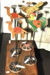 A GROUP OF FOUR NOVELTY PAINTED METAL CANDLE HOLDERS