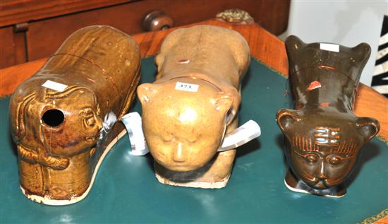 A GROUP OF THREE CHINESE GLAZED EARTHENWARE PILLOWS IN THE FORM OF CATS