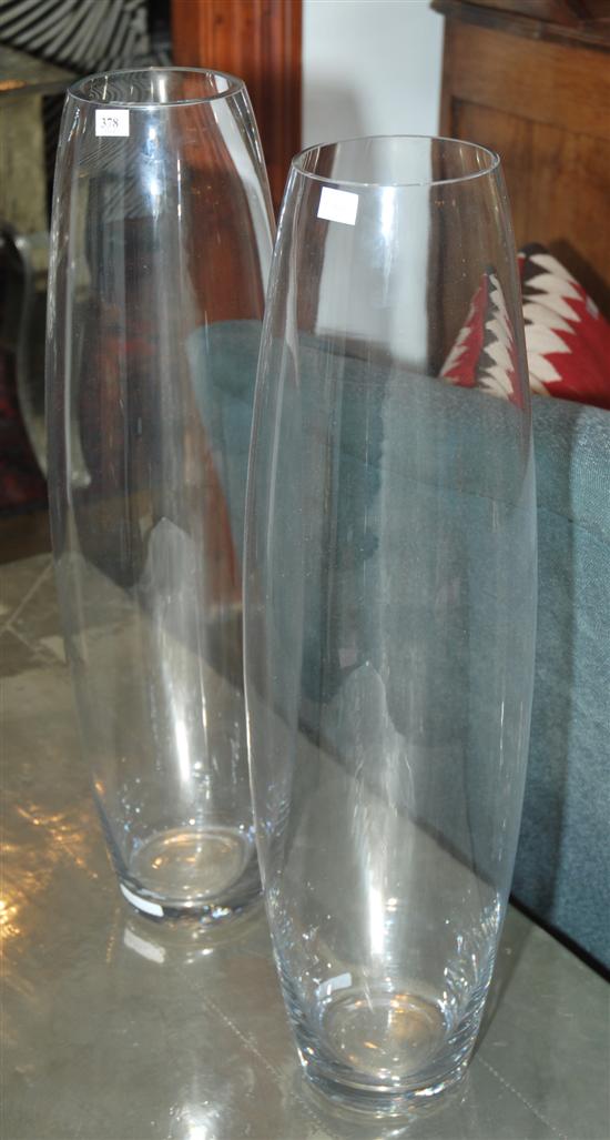 A PAIR OF GLASS TAPERING CYLINDRICAL VASES
