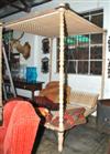 With a woven cord canopy raised on turned supports above a matching cord bed with a raised head support, 210 x 257 x 210cm.