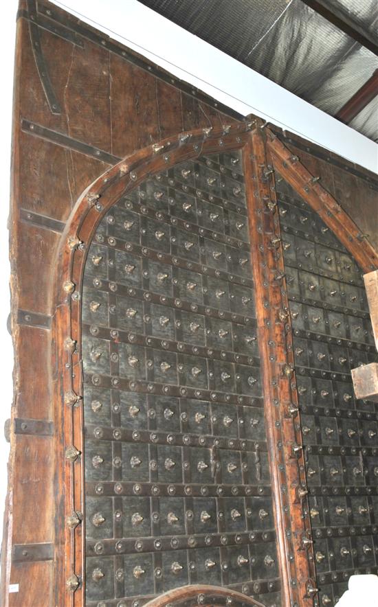 AN IMPRESSIVE PAIR OF INDIAN TEAK IRON AND BRASS DOORS
