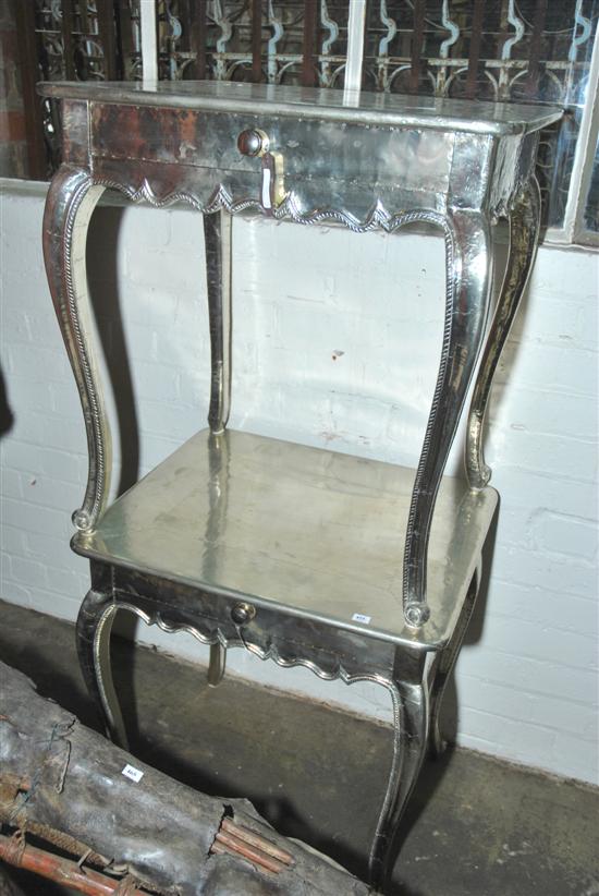 A PAIR OF SILVER OVERLAY LOUIS XV STYLE SIDE TABLES Each with a rounded rectangular top above a shaped apron and a frieze drawer raised on cabriole legs, 65 x 70.5 x 45cm.