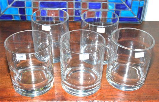 A COLLECTION OF FIVE CYLINDRICAL GLASS VASES