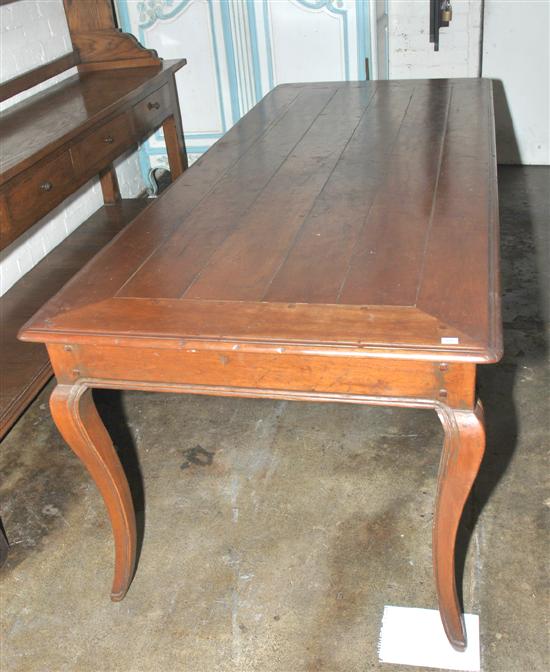 The planked rectangular top above a shaped apron raised on cabriole legs, 212 x 76 x 87cm.