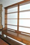 A FRENCH PROVINCIAL STYLE OAK DRESSER The open plate rack above a square top with four frieze drawers raised on square supports with a single shelf, 243.5 x 244 x 51cm.