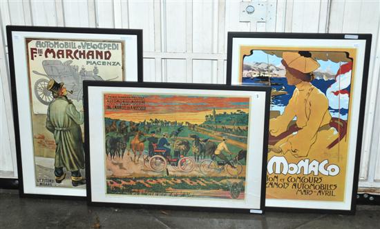 A GROUP OF THREE FRAMED PRINTS Each a replica vintage poster, each 74 x 53cm.