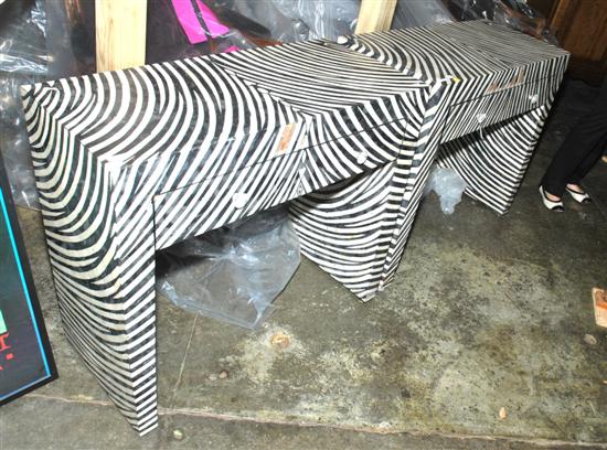 A PAIR OF FAUX ZEBRA STRIPE SIDE TABLES*