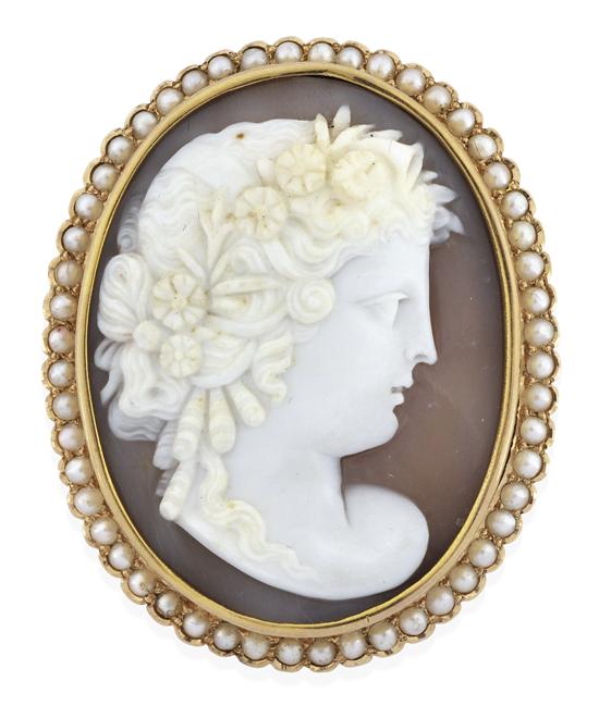 AN AUSTRALIAN CAMEO AND SEED PEARL BROOCH
