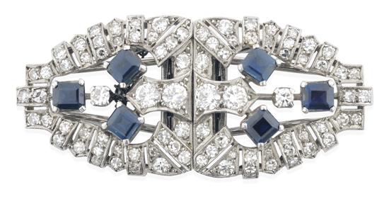 AN ART DECO SAPPHIRE AND DIAMOND DOUBLE DRESS CLIP/BROOCH