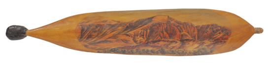 woomera hand painted in watercolour and pencil, varnish and kangaroo sinew