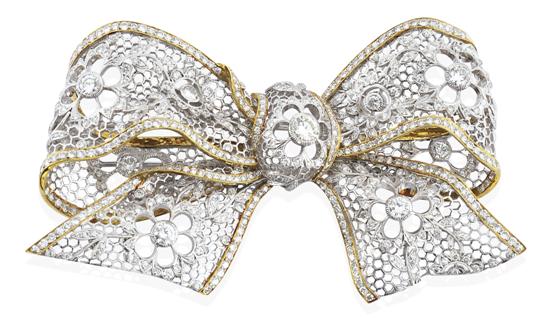 A DIAMOND BOW BROOCH/PENDANT