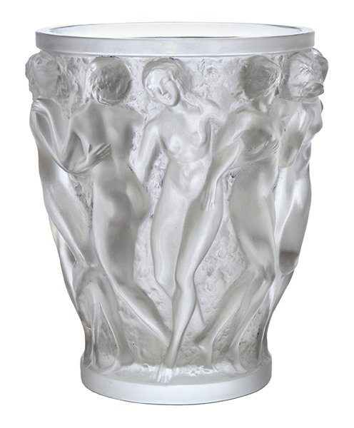 A RENE LALIQUE BACCHANTES PATTERN GLASS VASE