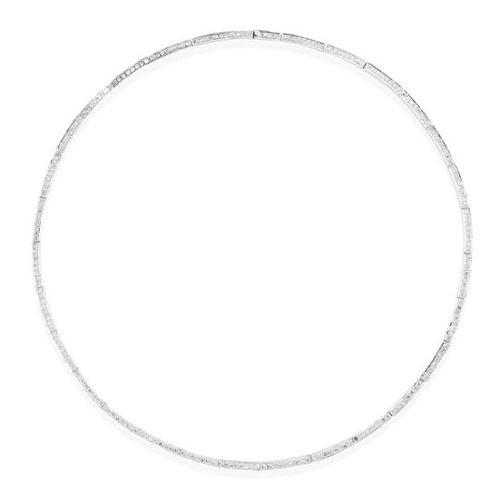 Comprising articulated rectangular links, each set with eight single cut diamonds, altogether totalling 2.40cts, in 14ct white gold, total length 460mm.