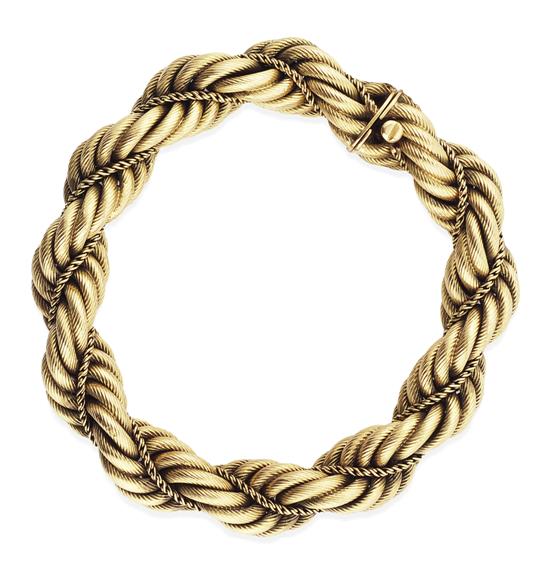 The heavy rope twist design in 18ct gold, total weight 52.09gms, total length 215mm.
