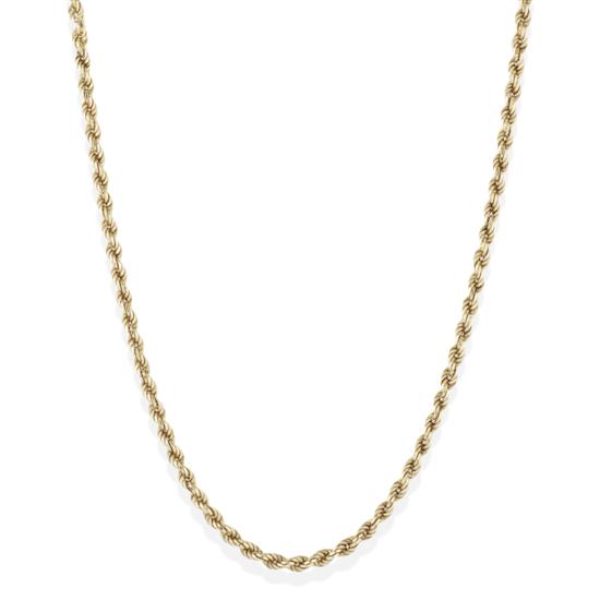 The rope twist design in 18ct gold, total weight 27.95gms, total length 1000mm.
