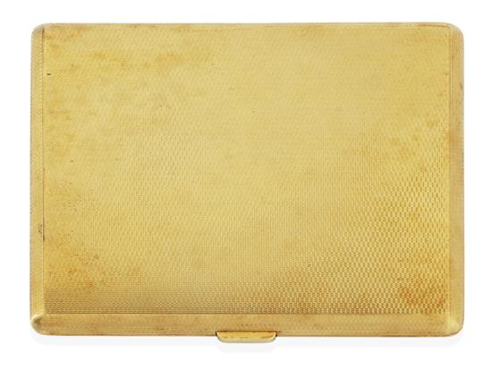 The rectangular case with engine turned decoration, in 18ct gold, total weight 263.0gms.