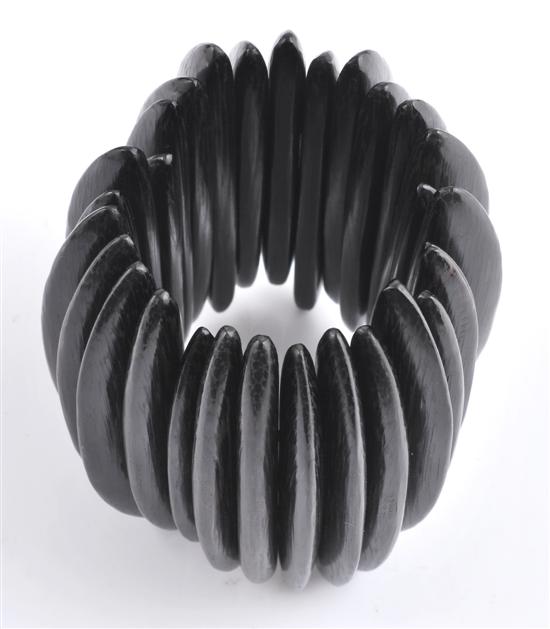 Of tribal design, comprising a full circle of curved, elongated wooden links.