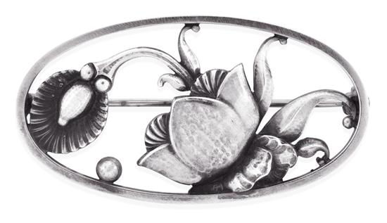 Of oval floral and foliate design, in sterling silver, reference 274, boxed.